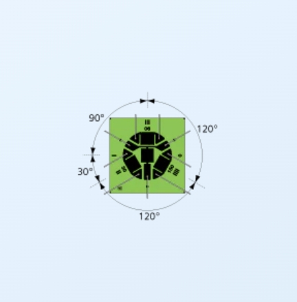 3線式時的0°: 紅色, 90°: 黃色,45°: 藍(lán)色的條紋。各種顏色均表示為S。